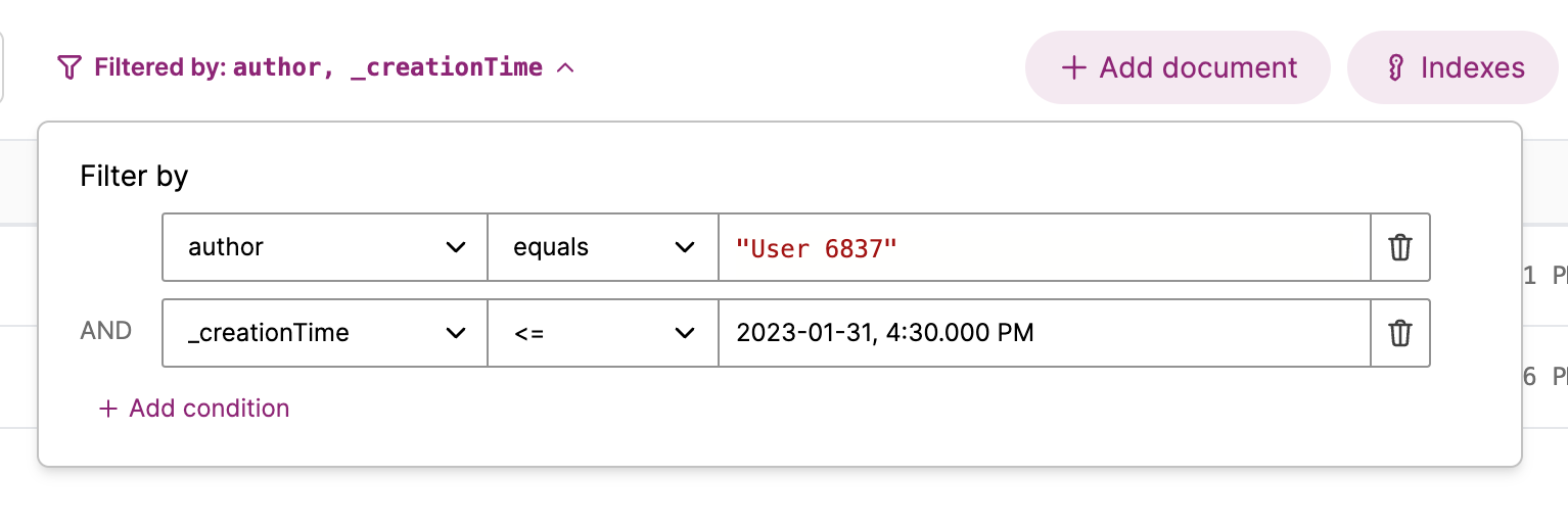 The Convex dashboard now supports filtering the documents in a table. Filters allow you to see only the documents that match some conditions. Check it out or read the docs!