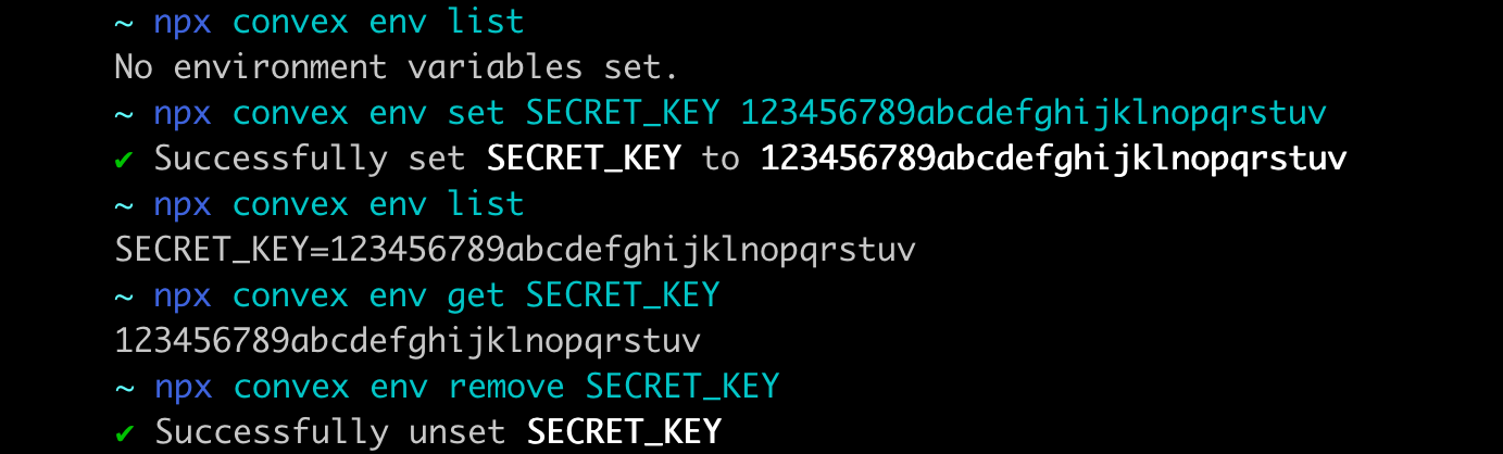 The new npx convex env command allows viewing, setting and deleting environment variables for any of your deployments without having to use the dashboard: