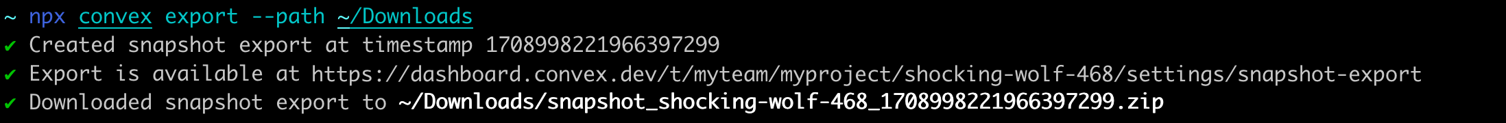 The new npx convex export command allows exporting a snapshot of all the data from any of your deployments, without having to use the dashboard: