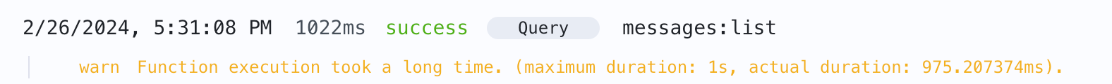 Convex has limits in place to ensure that your backend stays highly available and responsive. Functions now also log warnings related to their execution limits: